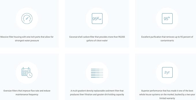 - Powerful Catalytic Carbon Filtration - The radial flow catalytic carbon filter boasts a high-flow design and advanced media blend, efficiently reducing chloramines, chlorine, chemicals, pharmaceuticals, microplastics, sediment, and unwanted tastes and odors.