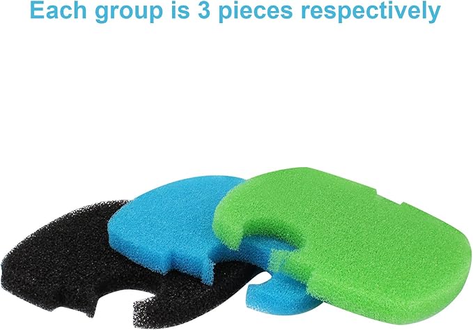 - Packaging contains: there are 3 density biological sponge pads: thick, medium, fine, 9 pieces in total (note: reused after rinse)