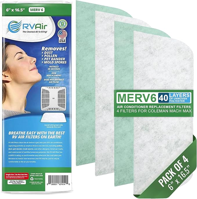 - ADVANCED FILTRATION TECHNOLOGY: Going beyond typical stock filters, the RV Air filter is designed with 40 layers of unwoven polyester. This intricate design ensures the capture of even the tiniest particles, ranging from 3 to 10 microns in size, earning us a MERV 6 rating. Elevate your travels with a filtration system that goes beyond standard camper filters.
