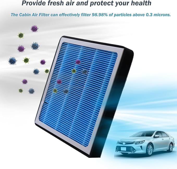 - 【3 Stage Filtration】 rav4 cabin air filter replacement with 3 layers, Blue primary filter layer, large-scale adsorption of dust particles.HEPA filter layer, centrally filter pollen and fine particles activated carbon strongly adsorbs odors and bad gases in the air. air filter for toyota venza improves the air circulation system inside the car to give you a fresh space.