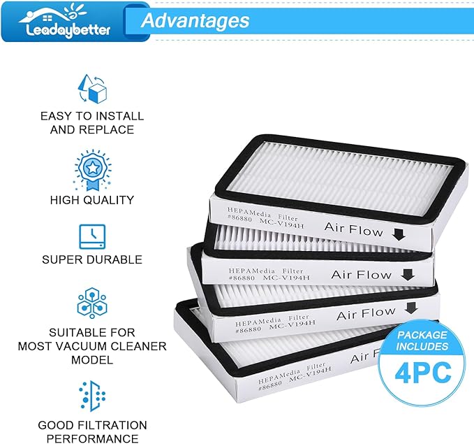 - 【Premium Material】The HEPA media filter 86880 mc-v194h 40320 for Kenmore is made of high-quality environmentally friendly materials, with H12 filtration efficiency, it can intercept 99.9% of particles as small as 3 microns, let you and your family to breathe fresh air at all times. The best choice for a healthy life!