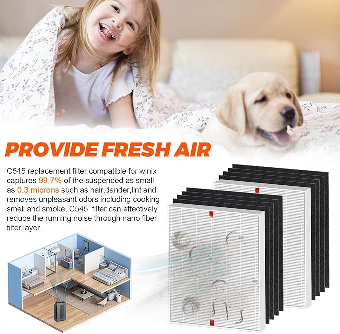 - √√ C545 REPLACEMENT FILTER COMBO SET : C545 HEPA Replacement Filter use true HEPA technology to absorb contaminants, traps 99.7% of the suspended with a size of 0.3 microns,winix filter s 1712-0096-00 maximum filtration of airborne dust. Winix air purifier C545 Activated carbon prefilter to trap cooking smell, smoke and other odors. winix c545 replacement filter combined with Activated carbon prefilters execute a multi-layered purification defense,greatly improve the overall air quality of your living space