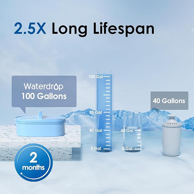 - Dedicated filtration performance: This system DOES NOT lower TDS value. If you prefer low TDS value, please choose Waterdrop TDS Reduction Pitcher (search: B0CDC5L13C). “TDS” stands for “total dissolved solids,” which are basically inorganic salts and a small amount of organic matter. The filter can reduce harmful substances while retaining beneficial calcium and magnesium, which are the main components of inorganic salts.