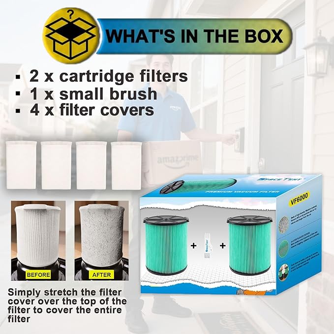 - INCLUDES 2 VF6000 5-Layer HEPA Media replacement filters, 4 filter covers and 1 small brush.