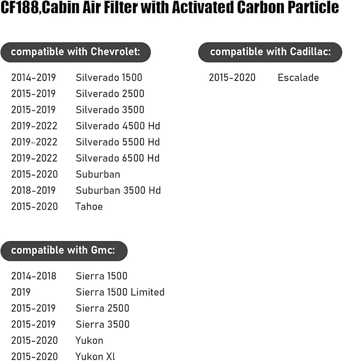 Chevrolet Cabin Air Filter in Silverado 1500/2500, Suburban/Tahoe & GMC Sierra 1500/2500 with Activated Carbon Particles