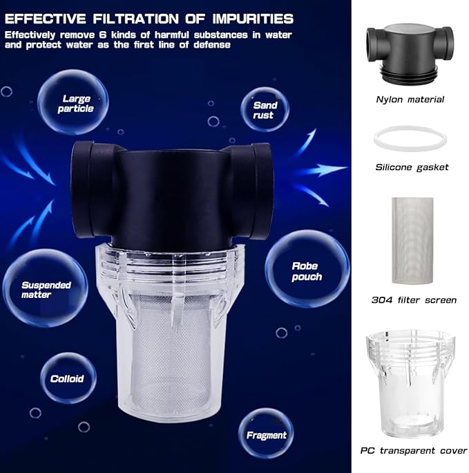 - Quick-Clean System - The transparent housing allows instant debris inspection. Simply unscrew, rinse under water (no tools needed), and reuse. Saves 80% maintenance time compared to traditional filters.