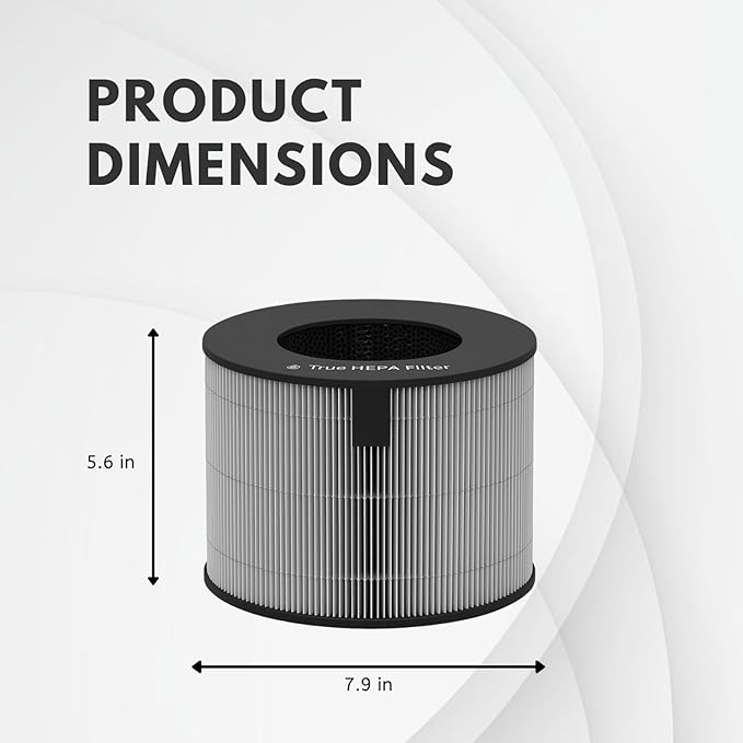 - 1 Filter included. Dimension: 7.9 x 7.9 x 5.6 inches. Suggested to replace every 6 months to optimize the performance