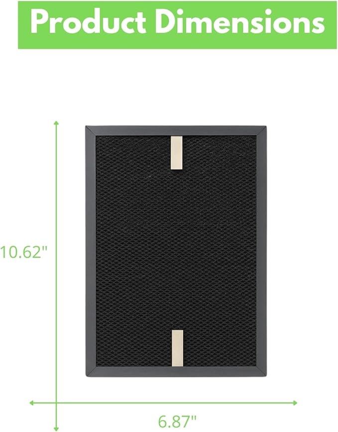 - 4 Filters included. Filter size dimension: 10.62" x 6.87" x 0.4" inches. Suggested to replace every 3 months to achieve the best result.