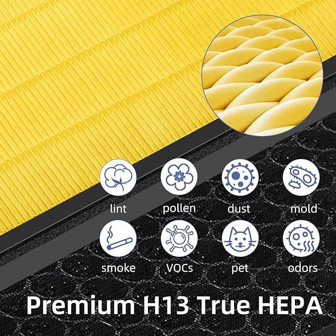 - 3-STAGE FILTRATION: This Vital 100S air purifier replacement filter uses 3-Stage Filtration, Pre-Filter(Not Include)+Grade True HEPA Filter + High Efficiency Activated Carbon Filter absorb odors and unwanted smell, the filter take out dust, pollen, and more