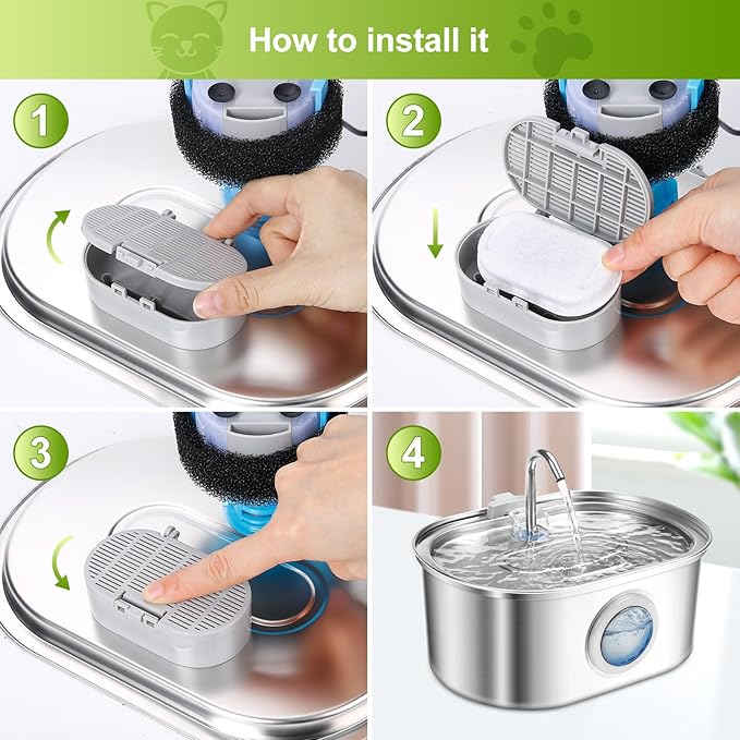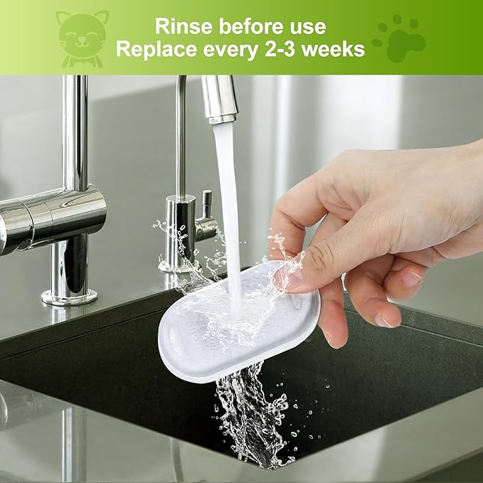 - 【Replace Regularly】Suggest replacing water filter and sponge every 2 weeks to properly maintain your fountain. Please change it more often if your have multiple pets.