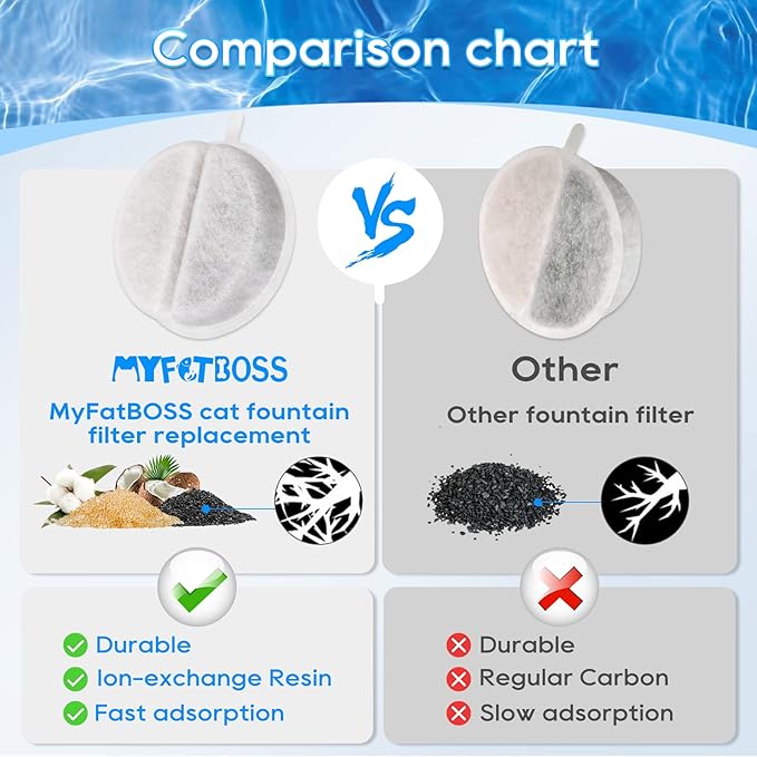 - Please soak the cat fountain filter replacement for 5 minutes and rinse for 30 seconds before using to prevent the activated carbon dust, which won't harm your pets, from shedding into the water