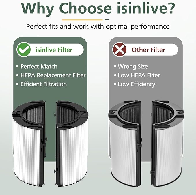 - ใ๐๐๐๐๐๐๐๐ ๐-๐๐-๐ ๐ ๐๐๐๐๐ใ- isinlive Hepa TP04 HP04 TP10 air purifi-er filter replacement for Dyson adopts 2-in-1 HEPA Filtration System which include HEPA Replacement Filter and High-Efficiency Activated Carbon Filter, effectively work for attaching 99.97% things down to 0.3 microns in size, and automatically improving indoor air quality better.