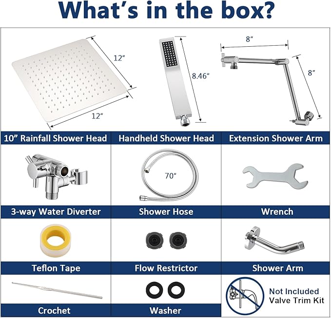 - 12 INCH SQUARE RAIN SHOWER: Experience total body warmth with our 12 inch square rain shower head, designed for complete coverage; Enjoy hassle-free maintenance with our clog-resistant silicone outlets