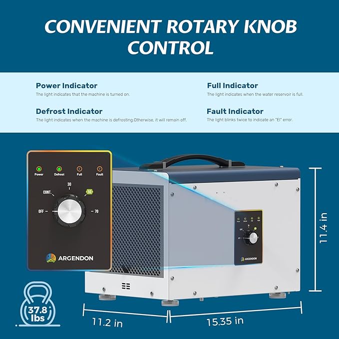 - 5-Year Limited Warranty & Safety Certified - Our crawlspace dehumidifier meets strict ETL safety standards, giving you peace of mind. Every Argendon crawl space dehumidifier comes with a 5-year limited warranty with a professional customer support team ready to assist at any time