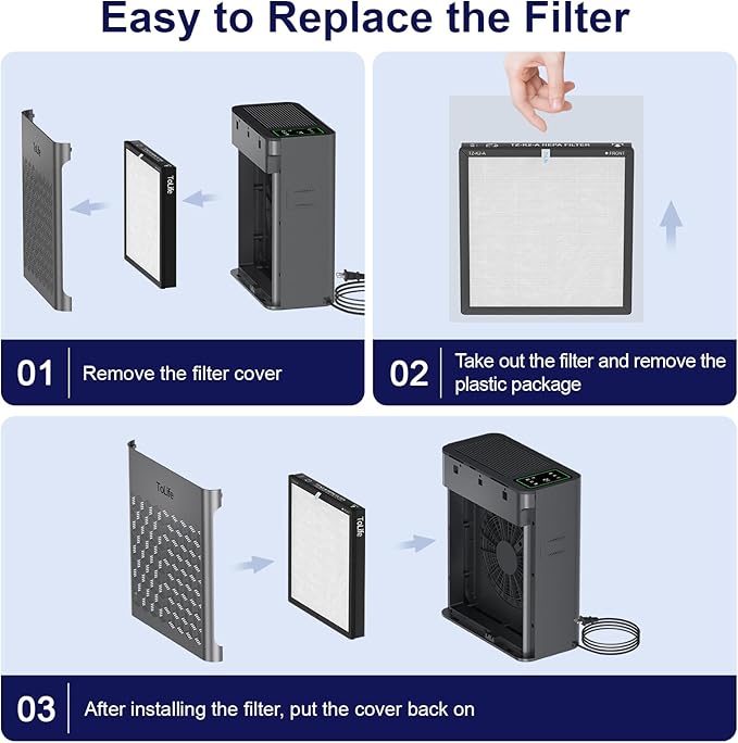 ToLife Air Purifiers for Home Large Room Up to 1295 Ft² with PM 2.8 Display Air Quality Sensor, Auto Mode, Timer, HEPA Air Purifier for Bedroom Filters Smoke, Pollen, Pet Dander, Allergies, Grey