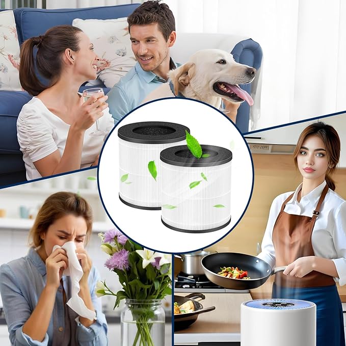 - 【3-STAGE FILTRATION SYSTEM】①High-Efficiency Activated Carbon Filter absorbs cooking smells,smoke,and pet odors. ②H13 Filter absorbs pet dander, dust, smoke, pollen, and other particles. ③Fine Preliminary Filter obstructs large particles such as dust, hair, lint, fibers and pet fur to help the air purifier work more efficiently.