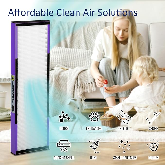 - H13 True HEPA Filter: Better than H11 HEPA, we use H13 true HEPA filters, which are more efficient. This filter captures airborne particles as small as 0.3 microns and effectively absorbs harmful substances such as pollen, pet dander, dust, smoke and odors.