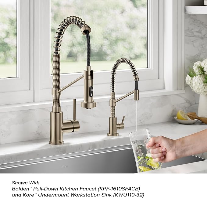 - PAIRS W/ BOLDEN KITCHEN FAUCET: The streamlined design complements a range of faucet styles, and pairs perfectly with the KRAUS Bolden Pull-Down Kitchen Faucet for a coordinated look (# KPF-1610 sold separately) adding an elegant touch to any kitchen or bar/entertainment area β HEAVY-DUTY CONSTRUCTION: Brass body and lead-free water lines offer maximum durability and corrosion resistance