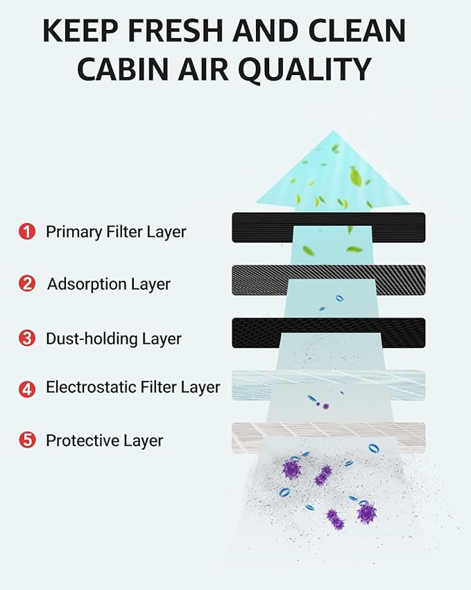 - Breathe Clean & Fresh Air: Experience the luxury of crisp, purified air with our Model S Model X Plaid cabin air filter, featuring soda and carbon layers to block particles and prevent dust from entering your cabin, circulating fresh and breezy air.