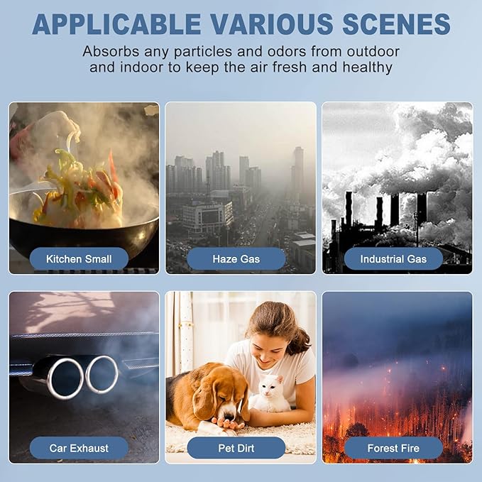 - 【3-STAGE FILTRATION SYSTEM】①High-Efficiency Activated Carbon Filter absorbs cooking smells,smoke,and pet odors. ②H13 Filter absorbs pet dander, dust, smoke, pollen, and other particles. ③Fine Preliminary Filter obstructs large particles such as dust, hair, lint, fibers and pet fur to help the air purifier work more efficiently.