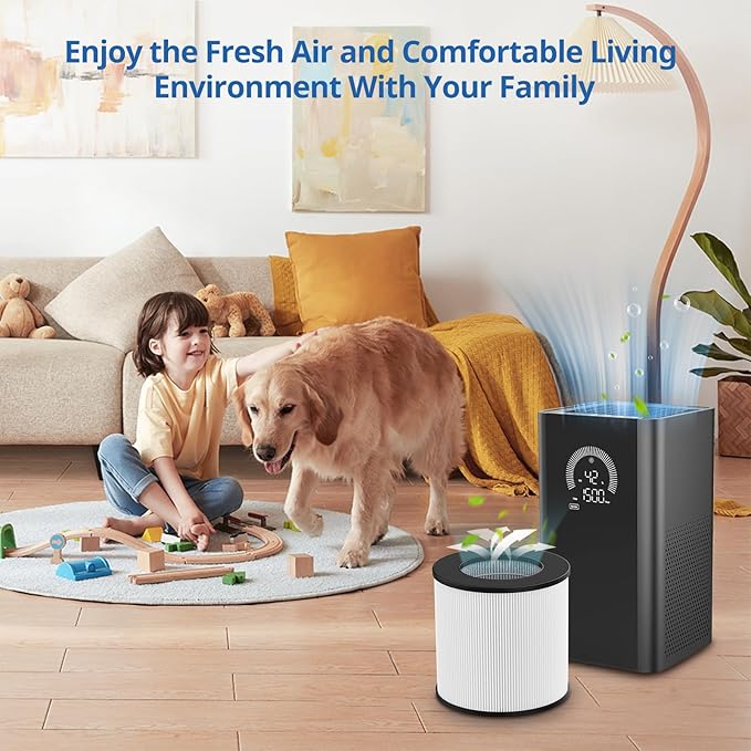 - EFFICIENT AIR FILTER: The KJ150 SY910 HEPA Filter can filter 99.97% of airborne particles down to 0.3 microns in size, like fine dust, pollen, smoke, odor and pet dander, reducing coughing, congestion, sneezing, itchy skin or difficulty breathing due to air pollution.