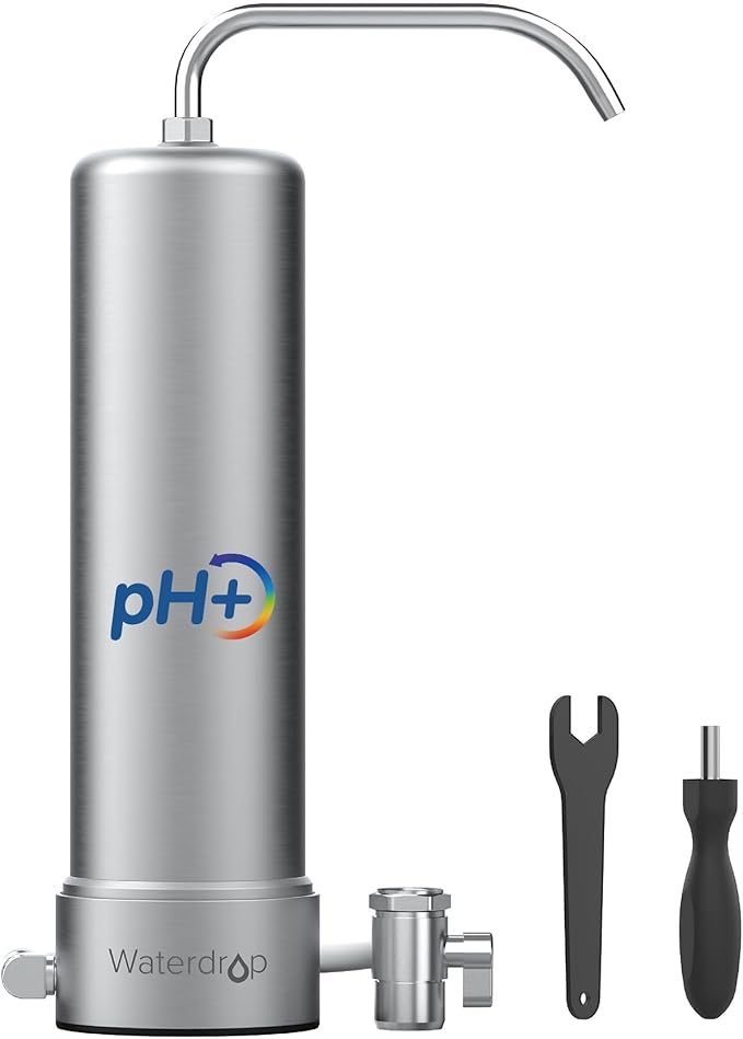[Alkaline] Waterdrop Water Filter for Sink Faucet, NSF/ANSI 42 Certified Countertop Water Filter System, 5-Stage Stainless Steel Faucet, 8000 Gallons, Reduces 99% Chlorine, WD-CTF-03(1 Filter)