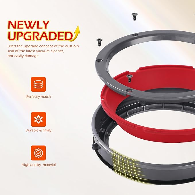 - ☛[Upgraded Design] The canister sealing ring is made in one piece molding, screw fixing. In order to reduce the likelihood of re-damaging the vacuum bin seal, we have upgraded the seal assembly using the same concept as the dust container seal of the latest vacuum cleaner, the Gen5. Made of high quality materials, more durable and better sealing.