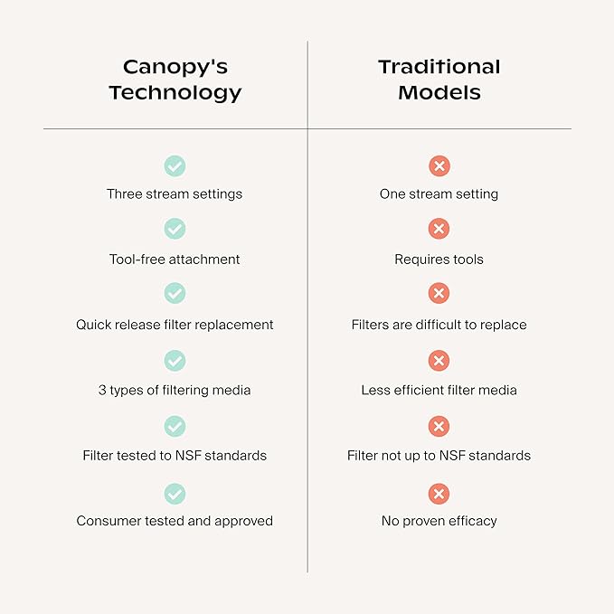 - BEST FILTER FOR HARD WATER WITH VISIBLE RESULTS IN 30 DAYS: In a Consumer Perception Study, 96% of participants saw a reduction in product build up, 96% agreed skin felt clearer, 91% felt hair was cleaner, 91% noticed less dryness and breakage, 87% felt less dryness and 87% agreed that their hair felt smoother. Voted Harper's Bazaar 2023 Beauty Icon, the Canopy Showerhead is a true game changer for your beauty routine.