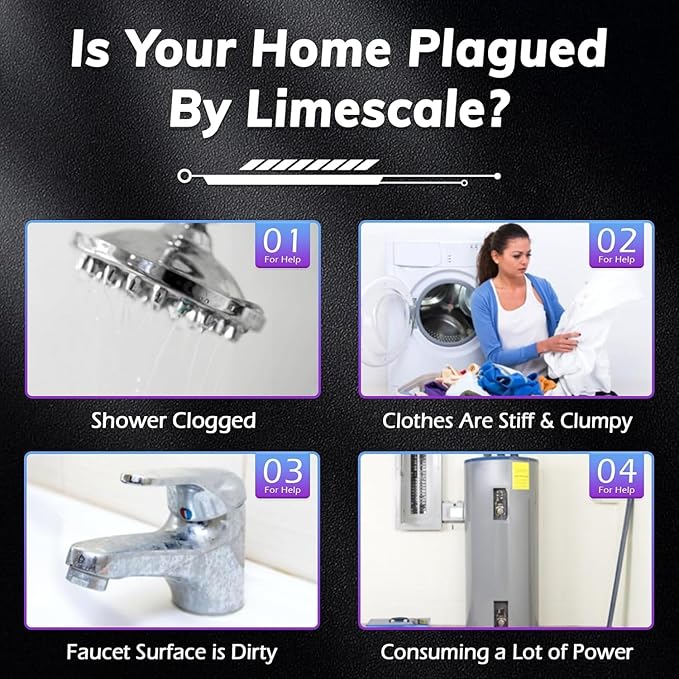 - 【Safety & Efficient】Helps to resolve hard water issues without the use of salt, chemicals, electricity or magnets. Retains the original normal minerals in the water, safe and healthy. Scale inhibition rate 86%, which helps to maintain high efficiency of water heater and avoid unnecessary electricity consumption.