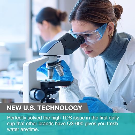 - 8-Stage Precise Filtration: Tested by official third-party laboratory (SGS), the Q3-600 reverse osmosis system has an ultra-high 0.0001µm precision filtration system. can effectively reduce TDS, chromium, PFAS, radium, fluoride, arsenic salt, iron, calcium, particles, chloride, chlorine and radioactive substances in your tap water. Enjoy clean and safe water with SimPure Q3-600