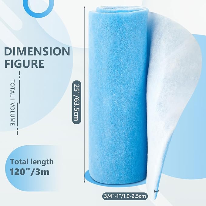 Buryeah 2 Rolls of 120 Inch Air Vent Filters Blue and White, DIY Size Filter, Dustproof Floor Vent Media Pad for Aquarium HVAC Home, 25" Wide