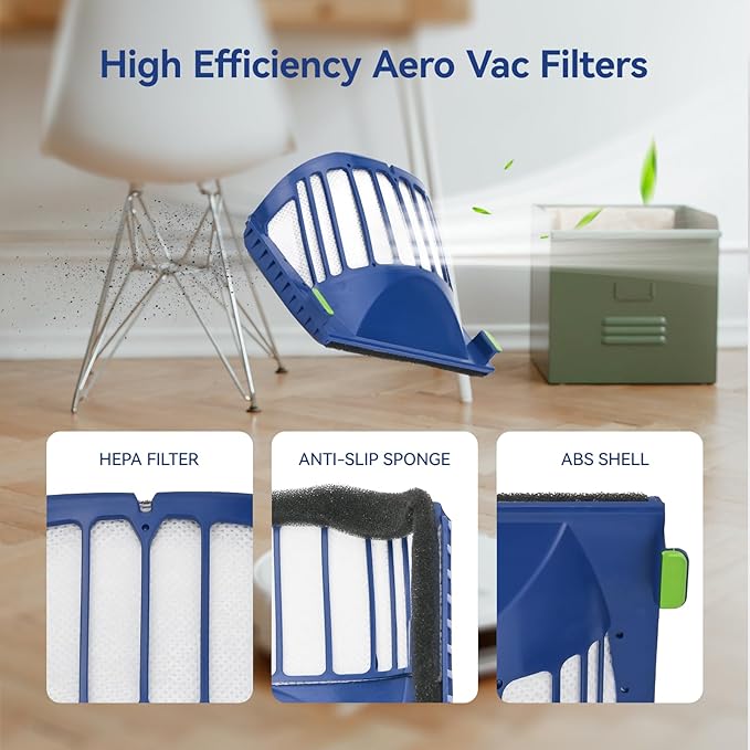- EXCELLENT PERFORMANCE: Our HEPA replacement filters are made from environmentally friendly ABS housing and non-slip foam with the advanced technology of airline vacuum cleaners. They effectively capture 99.97% of airborne dust below 0.3 microns such as hair, dander, lint. The edges of our HEPA filters fit perfectly into the plastic frame, which also greatly extends the life of the robot hoover