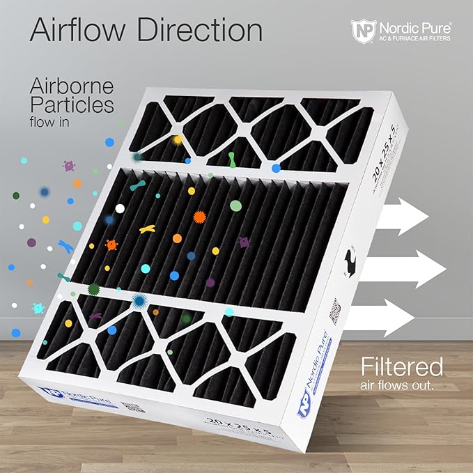 Nordic Pure 20x25x5 (Actual Size: 19 3/4 x 24 1/4 x 4 7/8) Air Bear Replacement Pure Carbon Odor Reduction Merv 8 Air Filter 1 PK