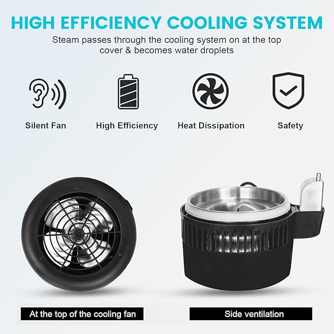 - [Considerate Design] We have a 4-blade aluminum fan and double rows of stainless steel condenser tubes for the distiller, allowing it to provide service for a long time and dissipate heat quickly to help you get distilled water faster. Large opening glass jar design ensures distilled water taste and easy to clean