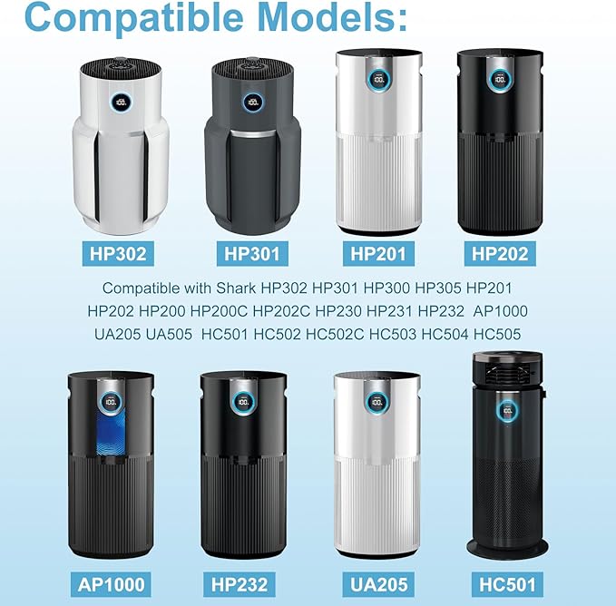 - Perfect Compatible: HP302 HP201 filter replacement perfectly Compatible with Shark HP302 HP301 HP201 HP202 HP200 AP1000 HP232 HC502 HC501,(Not compatible with HP102 HP072 HP132 HC450 Filter) Please check your purifier model before making an order.