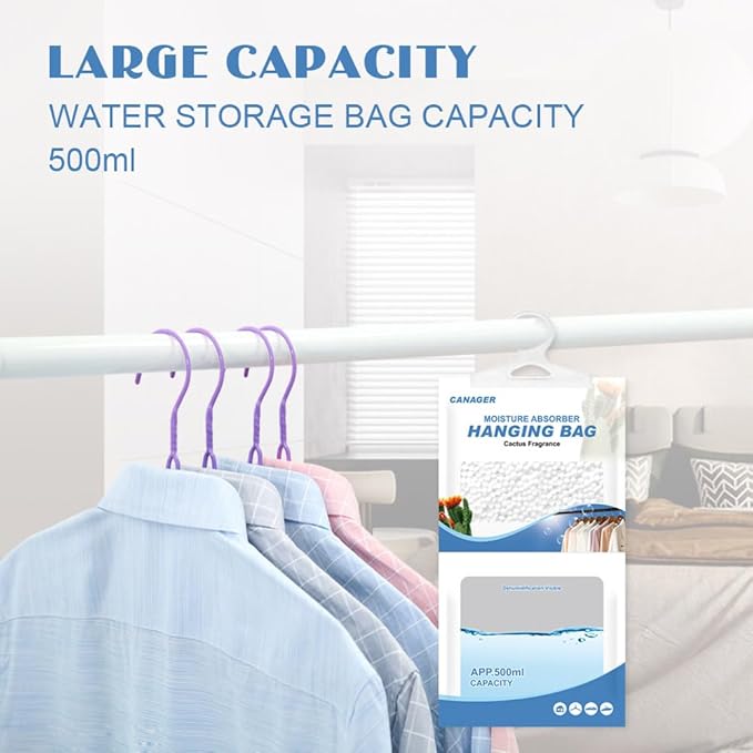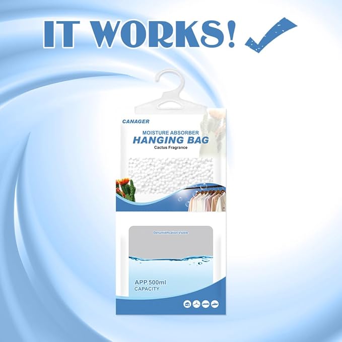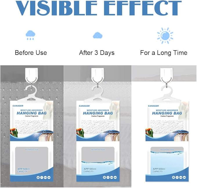 - 【Widely used】CANAGER dehumidifier bags have strong hook design, are suitable for most enclosed spaces, such as closets,basements,cabins,bathrooms,garages,laundry rooms and other enclosed spaces. Effectively protect your clothes and valuables from moisture.is perfect dehumidifier for closet,bedroom,kitchen,bathroom.