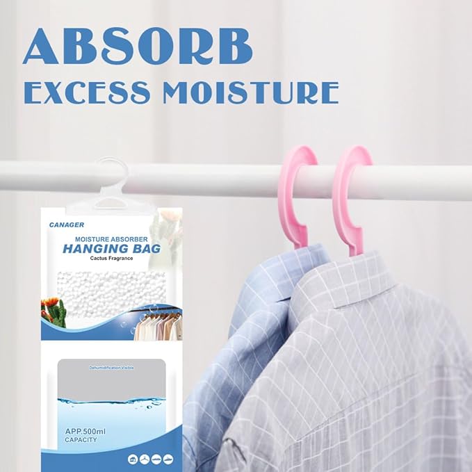 CANAGER Hanging Moisture Absorber, Cactus Fragrance Moistureproof Hanging Bag, Dehumidifier Bag (8 packs) Hanging Closet Dehumidifier Bags, Moisture Absorb 12.5 oz.