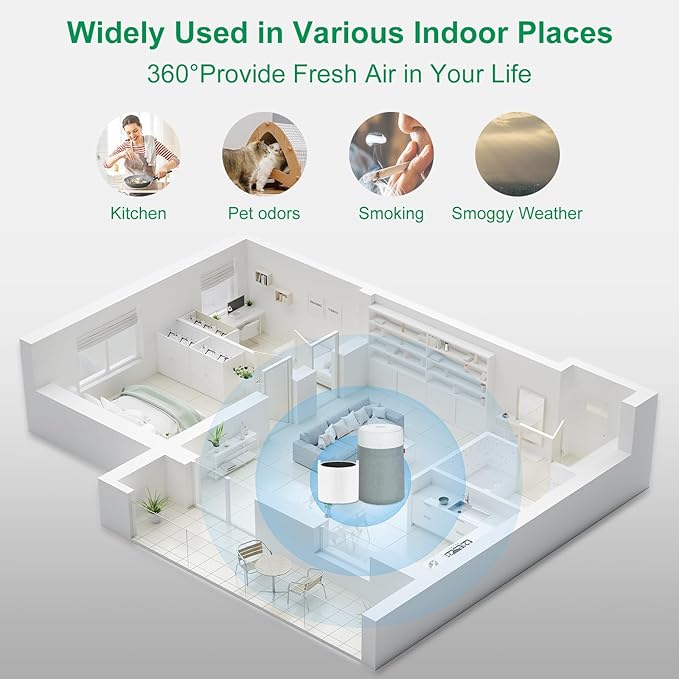 - 3-in-1 Efficient Filtration:Blue Pure 311i Max Filter adopts double-layer filtration technology, which absorbs pet plush、household waste, volatile organic compounds and smoke components through pre filters and carbon filters, providing fresh air for your family.