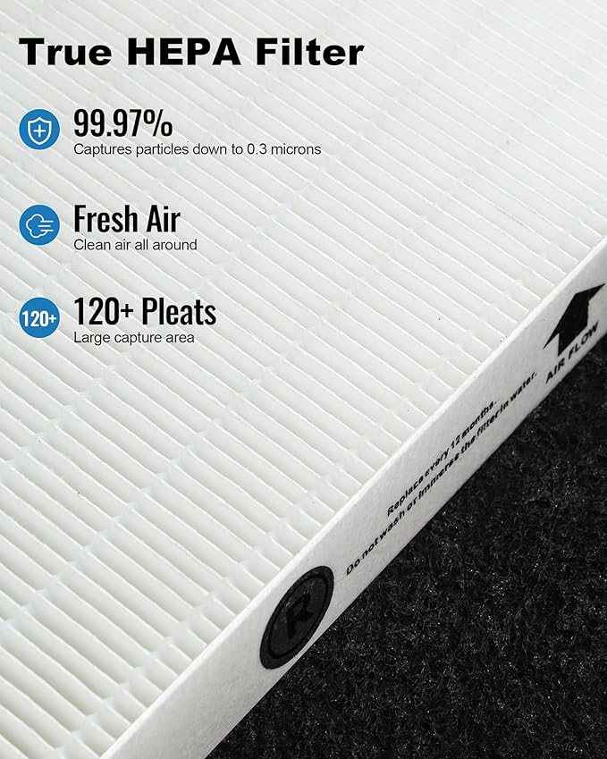 - Long-Lasting Protection for Your Air Quality: Designed specifically for the HPA300 series models, our filter combines activated carbon and HEPA materials to achieve up to 99.97% filtration efficiency. It continuously purifies your indoor air, ensuring every breath you take is fresh and clean. Offering round-the-clock protection for the respiratory health of you and your family.