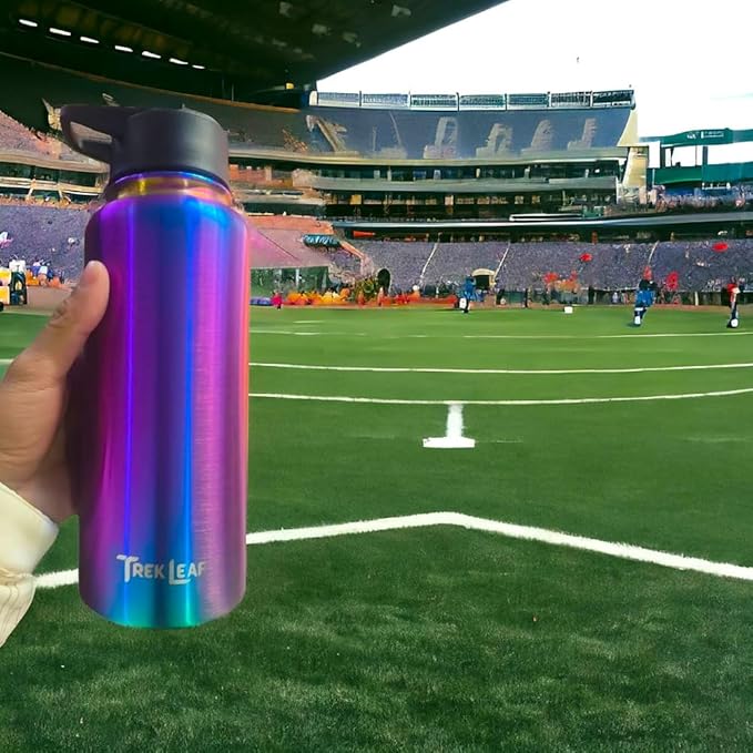 Travel Water Bottle with 3 Lids (Spout, Straw, Flip) Leak Proof, Quality, Vacuum Insulated, Stainless Steel (Twilight, 32 oz)