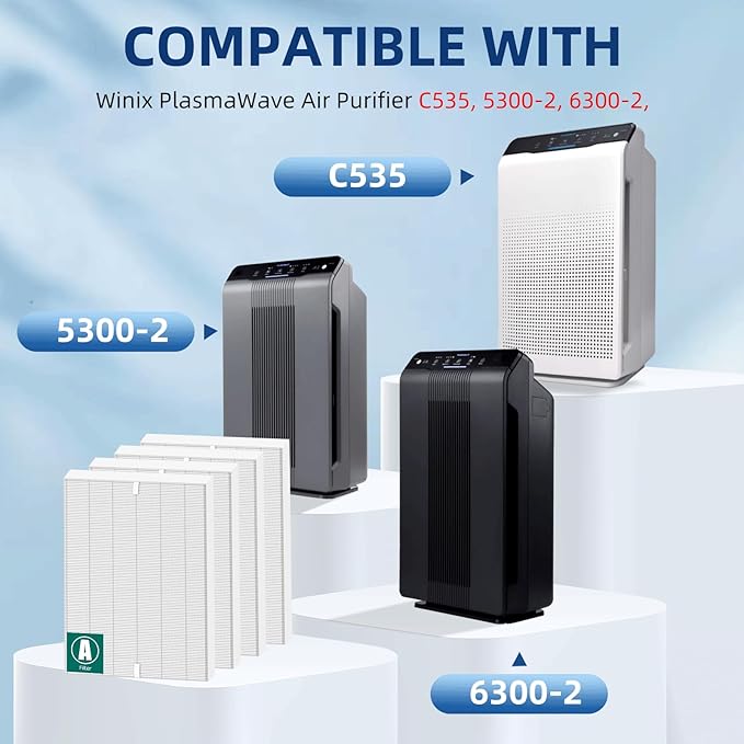 - [WIDELY USE]: Winix filter a replacement 115115 is Compatible with Winix PlasmaWave Air Purifier 6300, P300, 5000, 5000b, 5300, 5500, 5500-2, 5300-2, 6300-2, 9000, 9500, C535, and Fellowes AeraMax 290 300 DX95. Work just like the original one that come with unit. You could use for 115115 replacement winix filter at anywhere such as bedroom, living room, kitchen and office. Easy to replace and disposable, no tools required. Just take the original filter out, and put the new one in