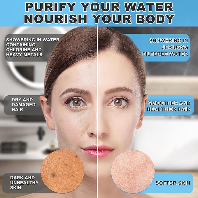 - Health Showerhead Filter System - 20-Stage shower water filter cartridge contains KDF55, Calcium Sulfite, Vitamin C, etc., which effectively reduces harmful substances such as residual chlorine, impurities, heavy metals, and odor smell, inhibits the growth of limescale, ensures clean water flow, and helps to keep your hair and skin in good health.