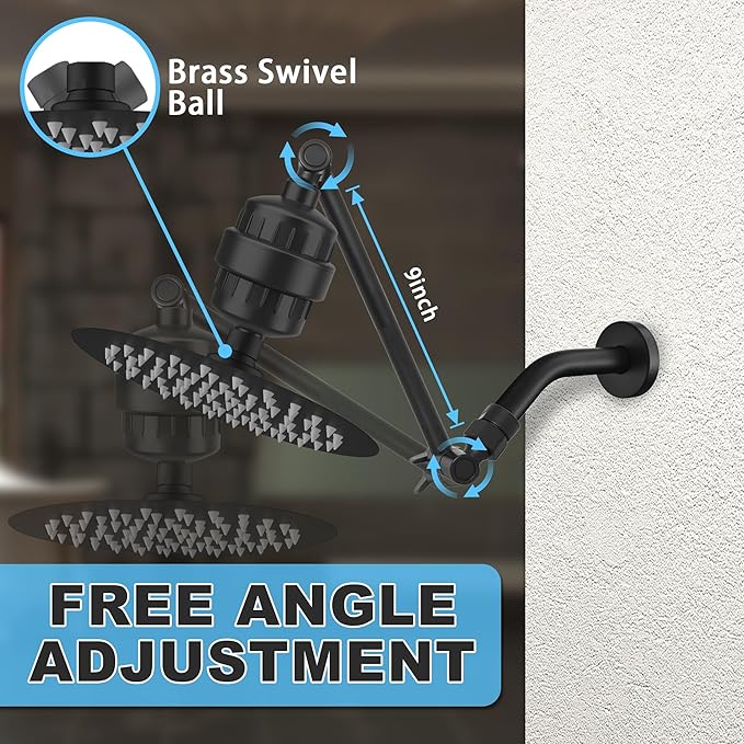 - Adjustable Height Shower Head - All metal rain shower comes with a 9-inch shower arm extender in addition to its brass swivel joint ball connection, which allows you to freely adjust the angle and height of the shower for a better showering experience.