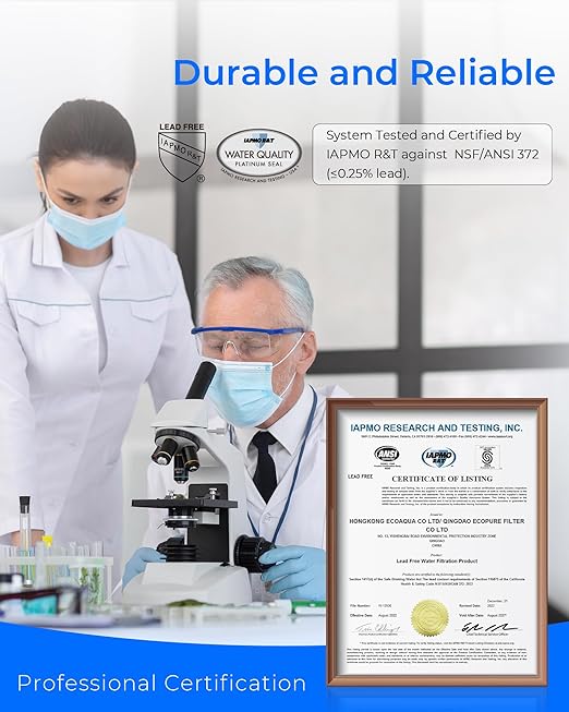 - 【NSF/ANSI 372 Certified】The water filter system is certified by NSF/ANSI 372 for lead-free materials to make your water safety.Built with durable materials, our water filter system has passed 100,000+ water hammer tests and low temp resistance to resist harsh environments.