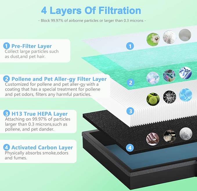 - Material : Activated Carbon Filter, True H13 Air HEPA Filter