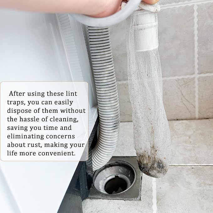 - Reliable Quality: Our nylon washing machine lint traps are made of durable nylon fabric with densely woven mesh that effectively captures hair and lint, preventing clogs in the drain pipe. The nylon ties are strong and secure, ensuring they stay in place.