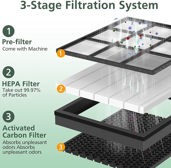 - 3 STAGE FILTRATION - The premium Vital 200S replacement filter for levoit adopts 3-in-1 HEPA Filtration System ( β Nylon Preliminary Filter (Comes with Machine ) β‘HEPA Filter β’Activated Carbon Filter with ARC Formula) to take out 99.97% of substance down to 0.3 microns in size, automatically improving air quality for you