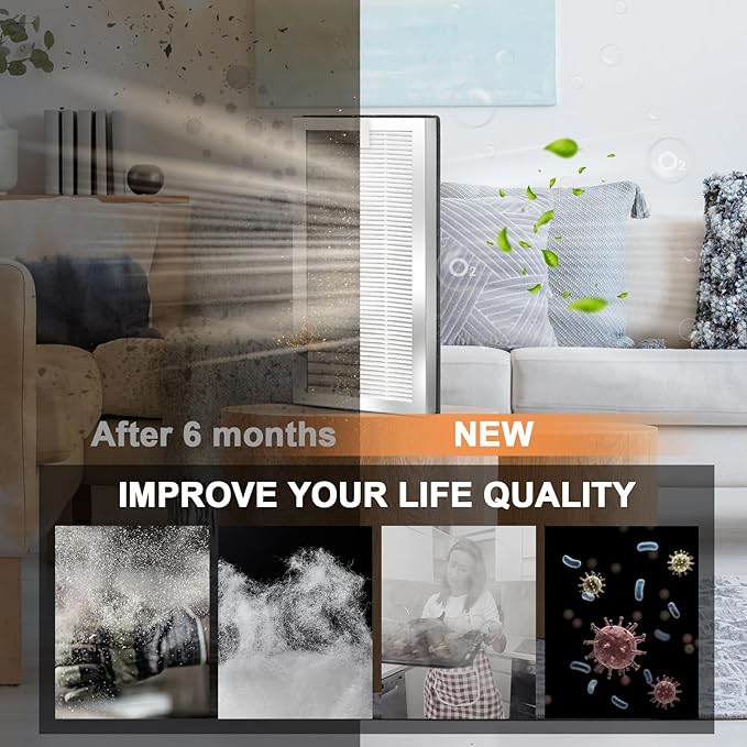 - SUPER FILTER CAPACITY: The filter can removes dust, pollen, haze, smog, wildfire smoke, odors, pet dander, and more, creating a healthier, cleaner home.