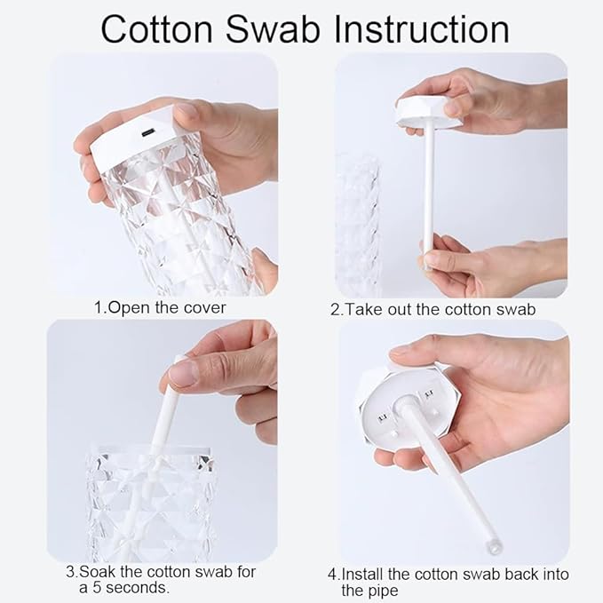 - 【Warming Tip】For better user experience, please soak the cotton swab before use and do not lose the wire spring when change the cotton swab. Package included 1x humidifier, 1x USB cable(wall charger not included), 1x User Manual, 1x cotton swab