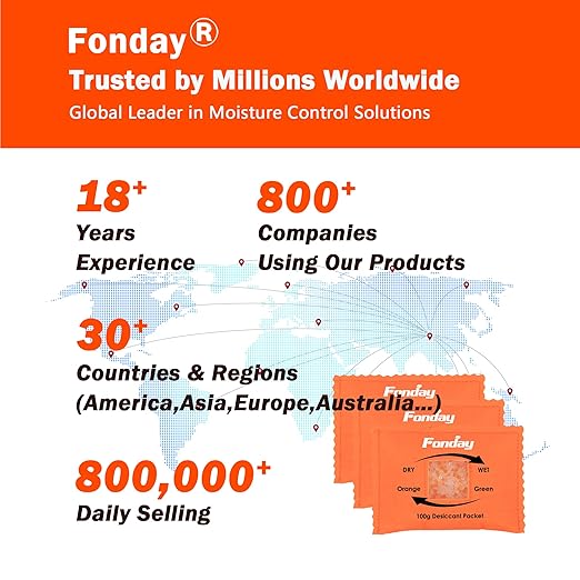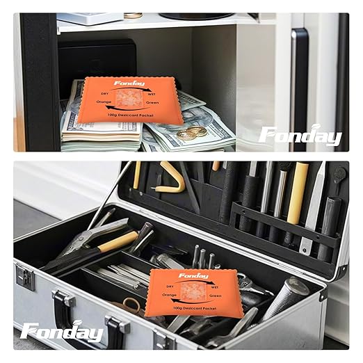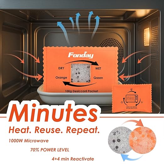 100Gram 10Packets Fonday Rechargeable Silica Gel Desiccant Packets Food Grade Fast Reactivate Desiccant Bags Moisture Indicating Orange to Green